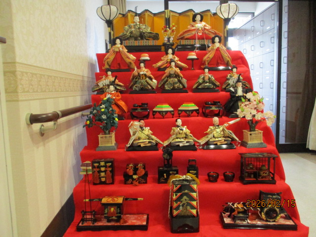 毎年、1階の玄関前にかざっている雛人形を今年も飾りました!