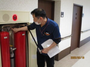 消火設備の説明中